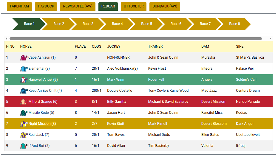 This service allows you to quickly see all the information that you need in real time. Search on trainers, jockeys, meetings and various other categories such as course, ground conditions, latest forms, RPR rating etc etc etc.